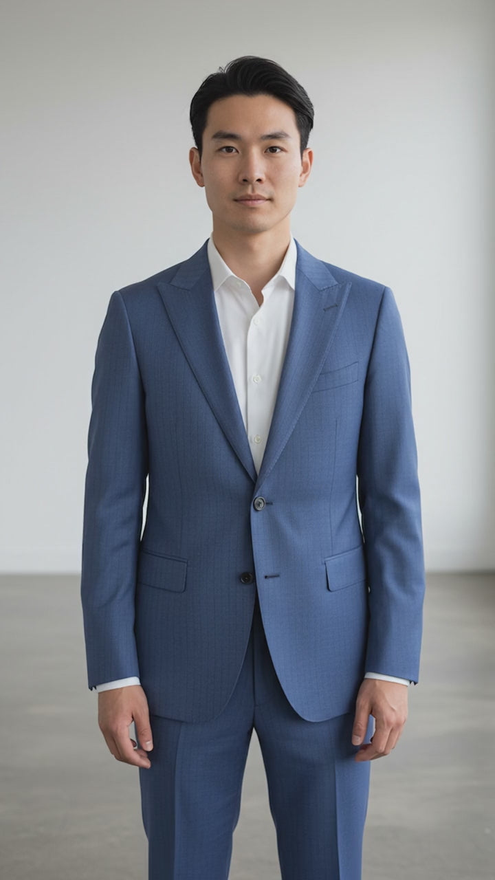 The Amore Appletini is a sophisticated two-piece suit crafted from 100% wool, featuring elegant peak lapels that command attention. This timeless silhouette delivers refined structure and a polished appearance ideal for formal occasions, business events, or elevated everyday wear. The wool construction ensures durability and a premium drape, while the peak lapel design adds a distinguished touch to your formal wardrobe. A versatile investment piece that transitions seamlessly from boardroom to evening engagements.